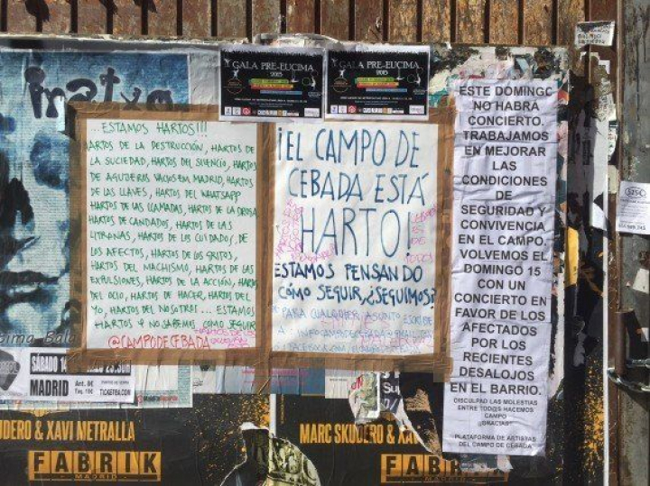 Los vecinos se organizaron y fueron a hablar con el Ayuntamiento. Querían hacer cosas en ese lugar. Querían que el público pudiese disfrutarlo mientras se construía o no el nuevo polideportivo. La suerte de dar con la persona adecuada, junto con el sentimiento de culpa de la Administración, ayudó a concluir las negociaciones con una cesión temporal del espacio. El 15 de mayo de 2011, fiesta del vecino San Isidro, abría sus puertas al barrio el Campo de Cebada.