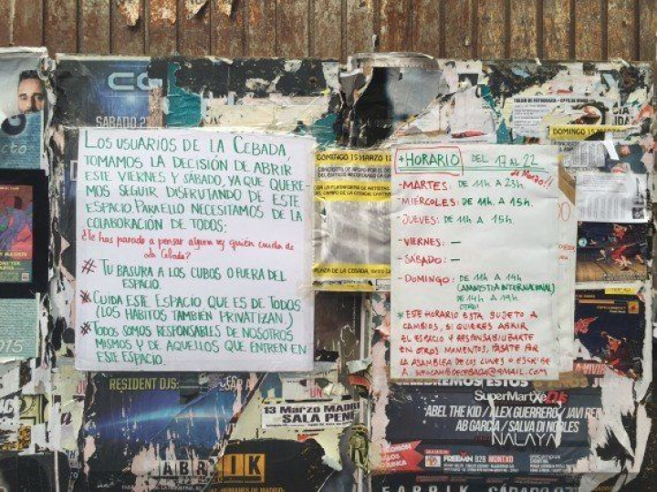 5. UNA ENTIDAD JURÍDICA. El Ayuntamiento cedió el espacio a la Federación Regional de Asociaciones de Vecinos de Madrid (FRAMV), que delegó en la Asociación de Vecinos de Centro-La Latina (AVECLA) la gestión del Campo. Hace un año esta asociación dijo que no quería seguir, y los vecinos crearon la Asociación Cultural Campo de Cebada. Para intentar conseguir subvenciones, presentar proyectos a la Administración, tener un seguro de responsabilidad civil en regla, etc, puede ser necesario crear una entidad como esta.