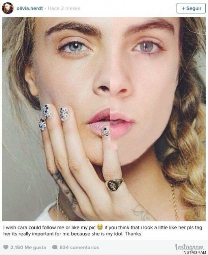 De 14 años de edad, Olivia Herdt -que vive en Uruguay, según indica en su Instagram- se parece más que ligeramente a Cara Delevigne, la modelo y actriz británica. De hecho, Herdt ha acumulado más de 13.000 seguidores de Instagram por su asombroso parecido con el actual rostro de Yves Saint Laurent Beauté.