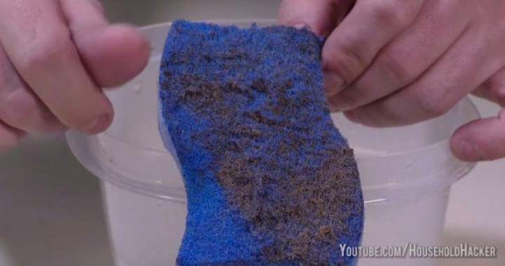 Llena un recipiente con dos tazas agua y un cuarto de taza de sal. Deja tu estropajo grasiento y ennegrecido a remojo durante toda la noche. Por la mañana, parecerá nuevo.