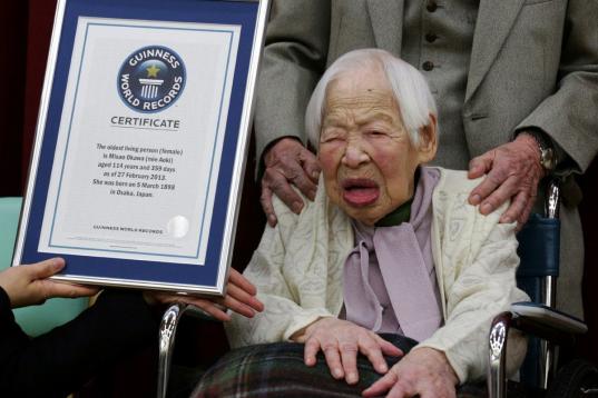 Ahora, la mujer más longeva del mundo es Gertrude Weaver, que tiene 116 años y vive en Arkansas (Estados Unidos). Cumplirá los 117 el próximo 4 de julio, Día de la Independencia en su país. Tras ella, hay otras tres mujeres (dos en EEUU y una en Italia) que tienen 115 años. El hombre más viejo del mundo es también un japonés, Sakari Momoi, que celebró su 112º cumpleaños el pasado 5 de febrero.