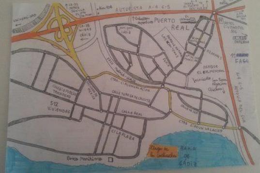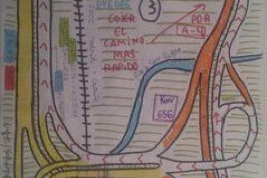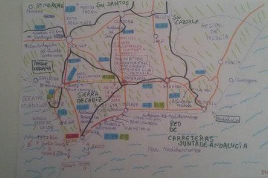 El adolescente tiene una memoria y un trazo sobre el papel que impacta. Es capaz de hacer planos y mapas señalizando hasta el más mínimo detalle del lugar que está representando. Sabe incluso de qué son las plantaciones que se sitúan a los lados de las carreteras, los solares abandonados o las vías en mal estado. Señala los límites de velocidad de cada autovía e indica cuál es el camino más rápido. "Ahora, mientras hablo contigo, se ha puesto la música y está haciendo una maqueta de un paso de Semana Santa".