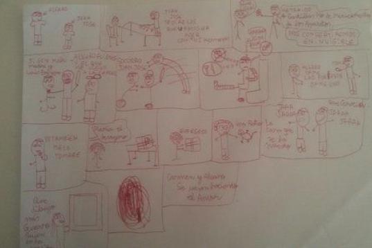 Es un chico muy cuadriculado, todo un coco. "Otro día decidió contar todos los azulejos de la cocina y me la llenó de post-its numerándolos. Es muy bueno en el colegio, y trabaja muy bien. Eso sí, si no le mencionas la palabra trabajo", advierte Juana. Pues Álvaro tiene muy claro que no quiere pasarse diez horas al día trabajando en algo que no le guste, piensa que es de locos; o al menos eso es lo que le transmite a su madre cuando ve algún cartel de "se buscan dependientes" pasando delante del supermercado. Él tiene muchos proyectos y muchas cosas a las que dedicarse: sus maquetas, sus dibujos, sus construcciones o sus cómics, en los que representa alguna escena divertida con amigos o familia.