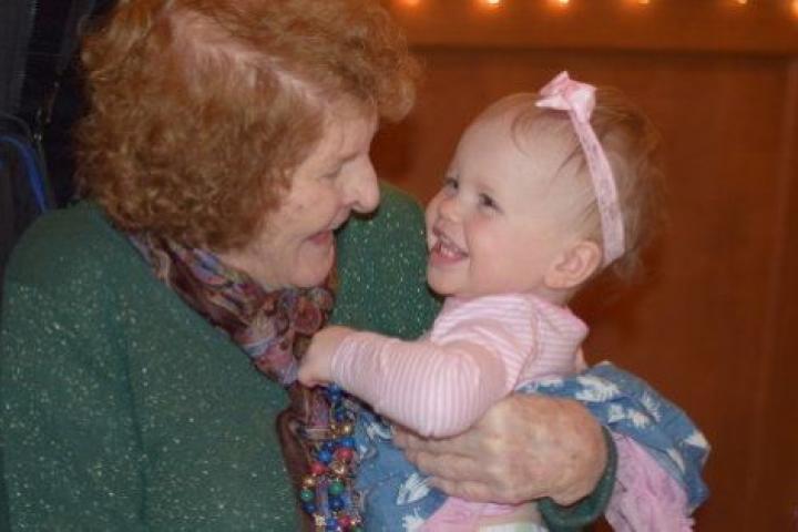 Marge Von Bargen, de 90 años, con su bisnieta Hanna Henderson, de 3.
