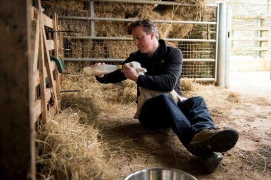 Como ejemplo, el primer ministro británico, David Cameron, que este domingo ha visitado una granja cerca de la localidad de Chadlington y allí se ha puesto a dar de comer a un corderito.