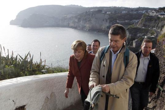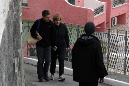 ¿Cómo pasa las vacaciones de Semana Santa la canciller? Angela Merkel y su marido, Joachim Sauer, se han dejado ver este domingo paseando por Sant'Angelo en la isla de Ischia, cerca de Nápoles.