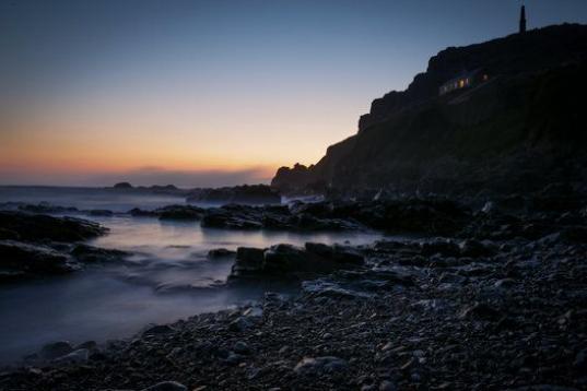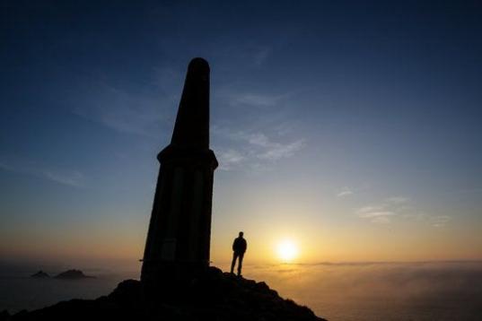 La puesta de sol sobre la neblina que se forma en el mar, en Cornwall (Inglaterra).