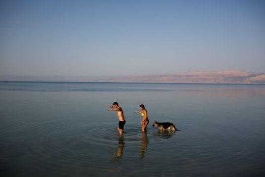 Una pareja israelí disfruta en el Mar Muerto durante sus vacaciones el octavo día de la Pascua Judía. Miles de israelíes han pasado estos días al aire libre conmemorando el éxodo desde Egipto hace 3.500 años.