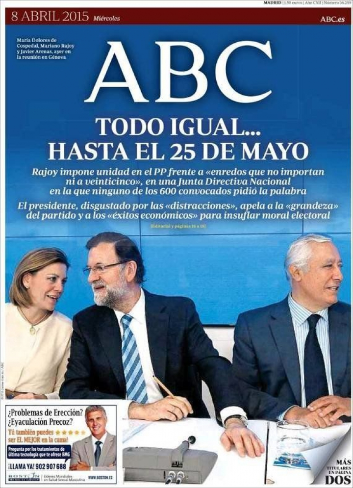 "Mariano Rajoy pretende sofocar los disturbios en el Partido Popular". Así se ve desde fuera, con los ojos del corresponsal del Financial Times, lo sucedido ayer en la calle Génova. Una sensación que desde dentro nadie se atreve a contradecir. Hasta ABC no duda en titular: "Todo igual... hasta el 25 de mayo".
