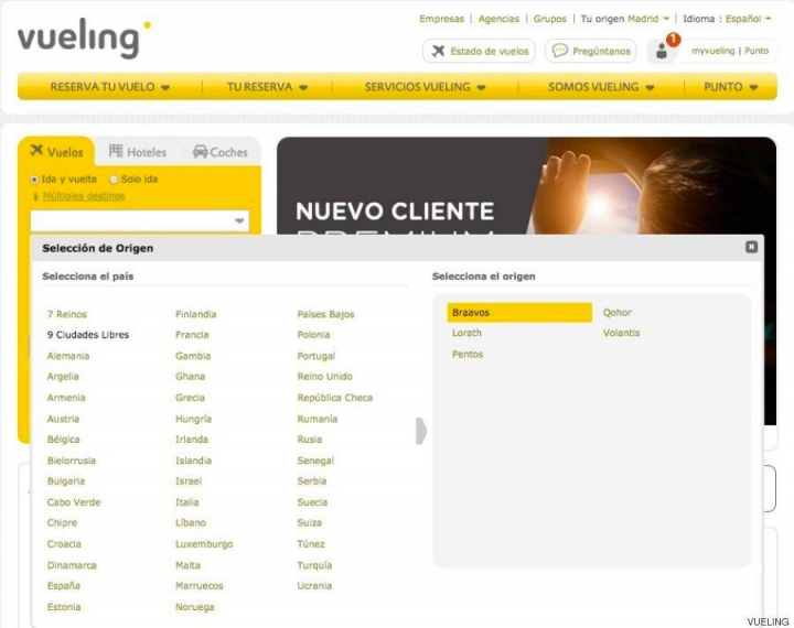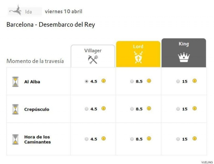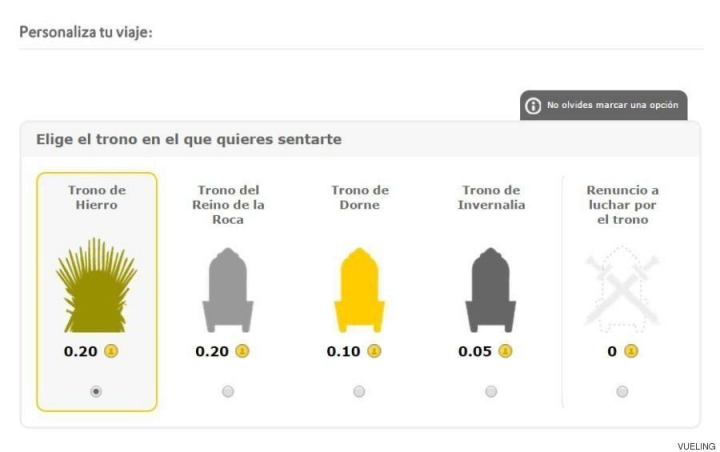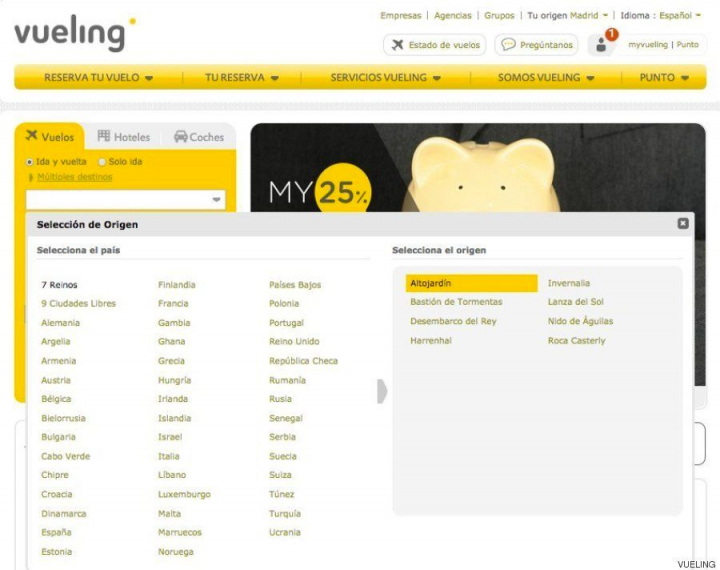En su página, la línea aérea con base en Barcelona permite reservar un vuelo a los Siete Reinos o las Ciudades Libres, escenarios habituales de la serie. Eso sí, los vuelos más allá del Muro se encuentran interrumpidos por el mal tiempo, como avisa la propia web cuando se intentan adquirir los billetes.