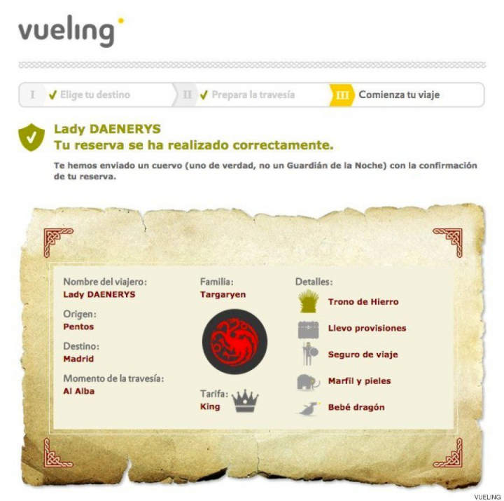 A Vueling le ha salido bien la jugada: esta original estrategia de promoción ha aumentado en un 40% el tráfico en su web, según revelan por teléfono a El Huffington Post desde sus oficinas. Samuel Lacarta, director del equipo de informática de Vueling, los responsables del homenaje, señala que en su departamento hay muchos fans de la serie.