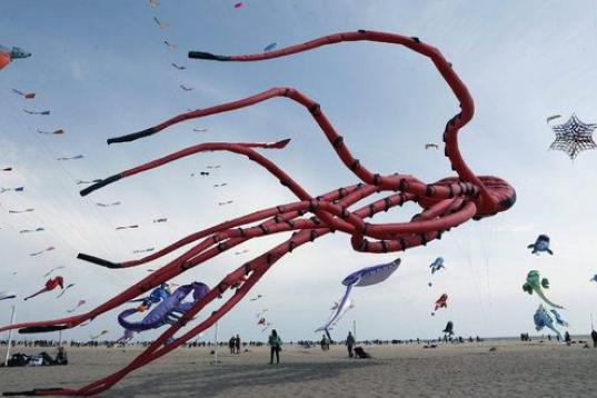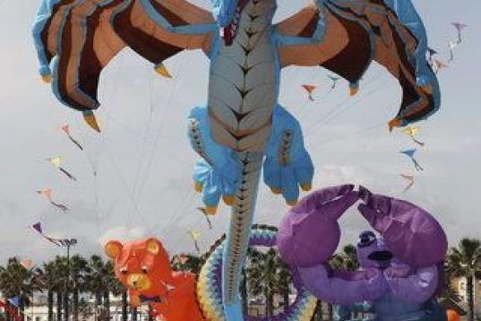 Una iguana, dragones, un oso, un pulpo, peces payaso o mariquitas, además de un pez manta, una foca o caballitos de mar han formado parte de la colección estática de cometas gigantes que también ha podido verse hoy.