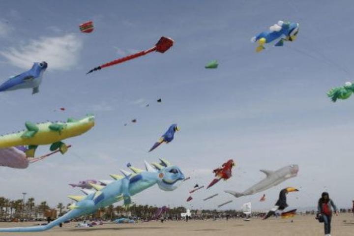 La playa de la Malvarrosa se colorea con decena de cometas