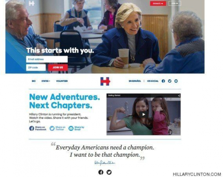 Clinton ha publicado un mensaje en su propia cuenta de Twitter en la que afirma: "Todos los americanos necesitan un campeón. Yo quiero ser ese campeón". "Me presento a la Presidencia. Los estadounidenses han superado tiempos económicamente duros, pero el sistema sigue aún favoreciendo a aquellos que están en lo más alto. Cada día los estadounidenses necesitan un luchador, y quiero ser esa luchador. Me lanzo a hacer campaña para conseguir tu voto", asegura Clinton en un vídeo en su nueva web.