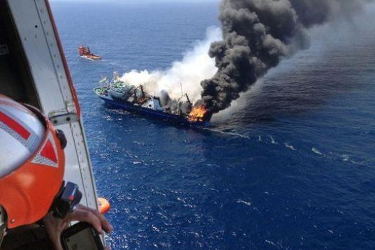 El fuego se originó en una caldera de la sala de máquinas del barco, lo que provocó la evacuación de sus 72 tripulantes, que tuvieron que ser atendidos primeramente en el muelle y trasladados más tarde a un hotel.