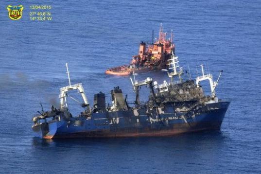El pesquero incendiado este sabado en el puerto de Las Palmas de Gran Canaria continúa ardiendo y ha sido remolcado mar adentro, a unas 20 millas al sur de Gran Canaria, ante la imposibilidad de apagar el fuego, ha informado a Efe un portavoz de Salvamento Marítimo.