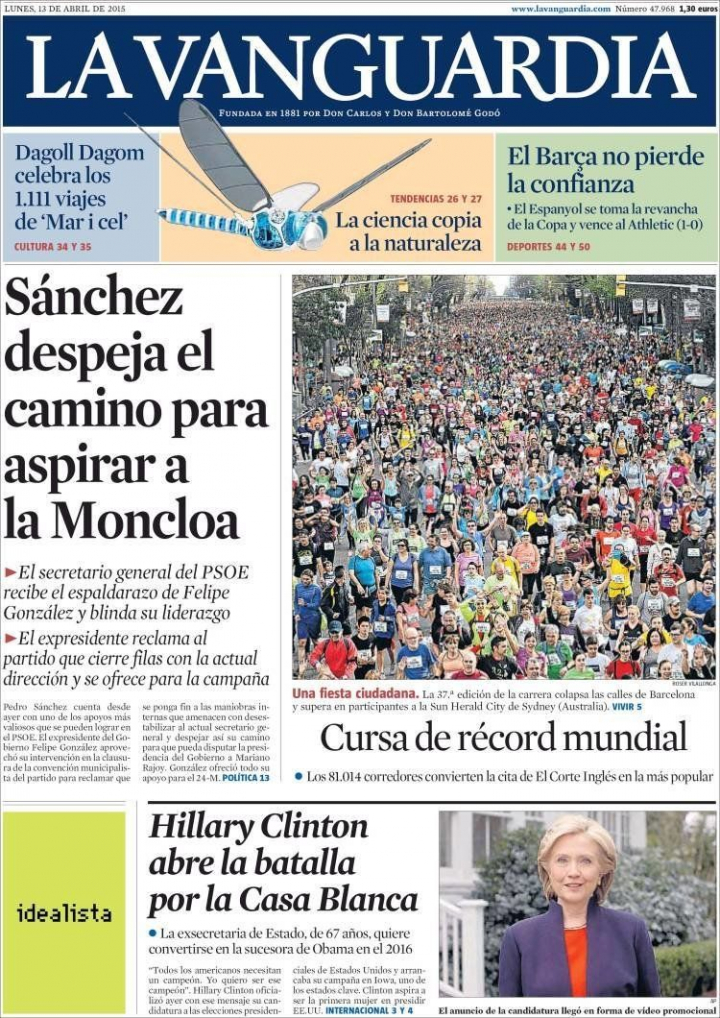 Y con ello, concluye La Vanguardia, "Sánchez despeja el camino para aspirar a la Moncloa" porque la estrategia de los principales partidos, como escribe Juan José Mateo, pasa por "apostar por sus líderes para romper el empate electoral" que ayer arrojaba el último barómetro de Metroscopia para El País.