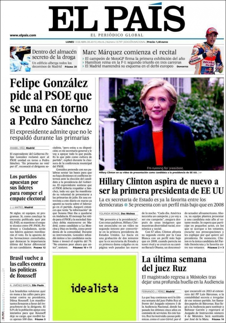 Tampoco ha renunciado a su papel de referente el expresidente Felipe González que, como señala El País, "pide al PSOE que se una en torno a Sánchez"...