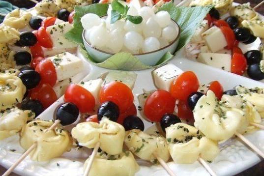 Con taquitos de mozzarella o queso fresco, tomates cherry y aceitunas negras. Aquí puedes ver la receta completa.