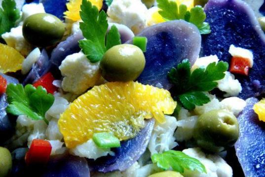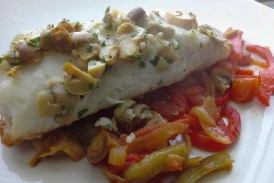 Lleva bacalao desalado, pimientos rojos asados, patata, aceitunas negras, tomate seco, perejil y aceite de oliva. Aquí tienes la receta completa.