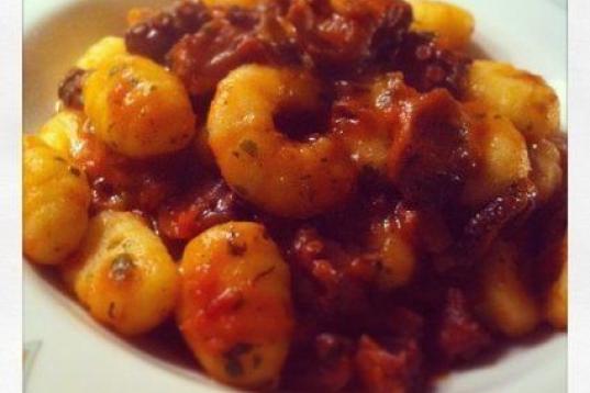 Con patatas, panceta, pimentón dulce y aceite de oliva. Puedes ver aquí cómo prepararlo.