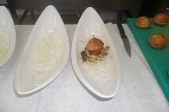Está hecho con bonito, cebolla picada, palitos de surimi, mayonesa, tomate, lechuga, salsa rosa, pimiento rojo, verde, amarillo y pan de molde. Se prepara en menos de 20 minutos. Puedes ver aquí cómo hacerlo.
