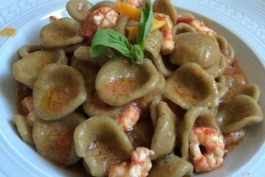 La salsa está hecha con albahaca, zumo de naranja y de limón. Mira aquí la receta.