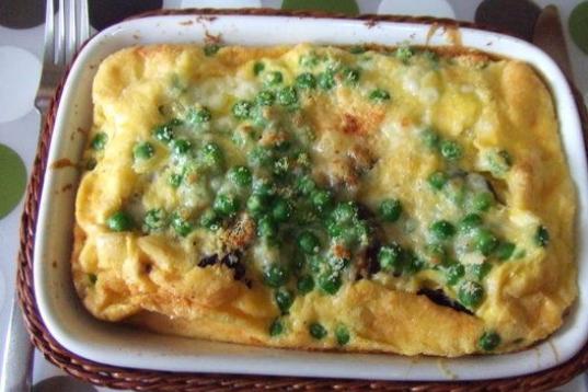 Está hecho con cebolletas, calabacín, berenjenas, guisantes, huevos, queso cheddar y parmesano. Se prepara menos de 20 minutos. Esta es la receta completa.
