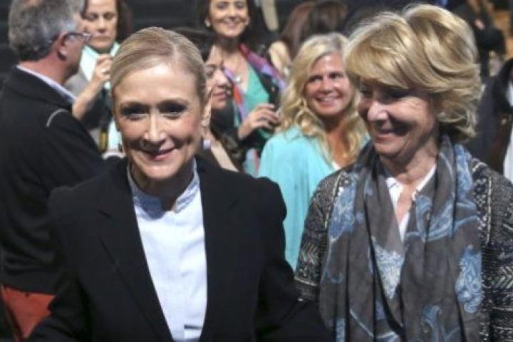 Mensaje para sus 'cachorros'. Las candidatas del PP a la Comunidad y a la Alcaldía de Madrid, Cristina Cifuentes y Esperanza Aguirre, han unido este jueves fuerzas en un acto de entrega de carnés de Nuevas Generaciones en el que han llamado a los jóvenes a "desenmascarar" a Podemos y su "casta de funcionarios" por sus ideas "anticuadas".