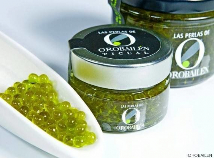 Lo que parecen perlas de oro son en realidad… perlas de aceite Picual, ideales para adornar y dar sabor a un plato gourmet.