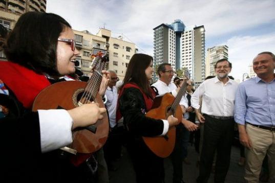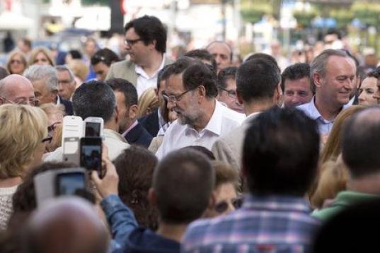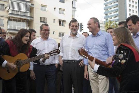 Rajoy ha tenido la oportunidad incluso de ver la actuación de una tuna en plena calle y de dar palmas siguiendo el ritmillo. Una hora le ha llevado al jefe del Ejecutivo, acompañado del presidente de la Generalitat y candidato a la reelección, Alberto Fabra, recorrer las calles peatonales del centro de esta localidad costera.