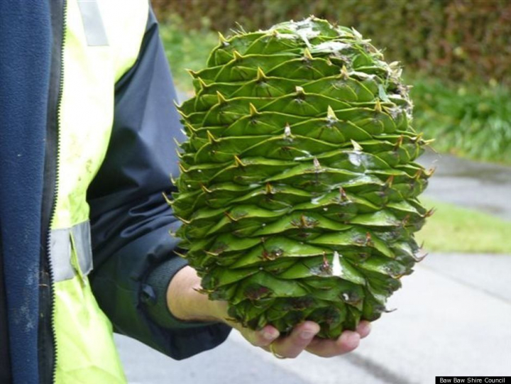 Este árbol perenne conífero del sureste de Queensland (Australia) puede matarte. Sus frutos son como piñas pero del tamaño de pelotas de fútbol, de cáscara dura y nutritivos, y pueden llegar a pesar hasta 10 kilos. La posibilidad de que puedan dar a alguien ha provocado alertas en algunas zonas del país.