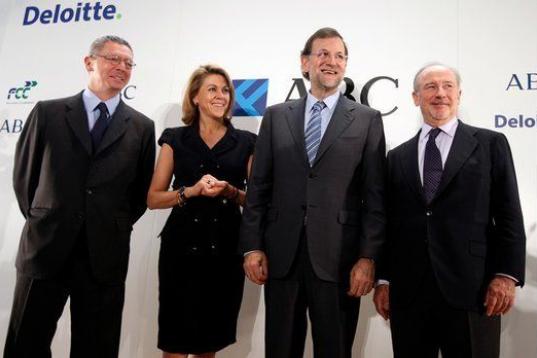 Soraya Sáenz de Santamaría, Rato, Cristóbal Montoro, Rajoy y Cospedal, en un acto el 4 de noviembre en 2009.