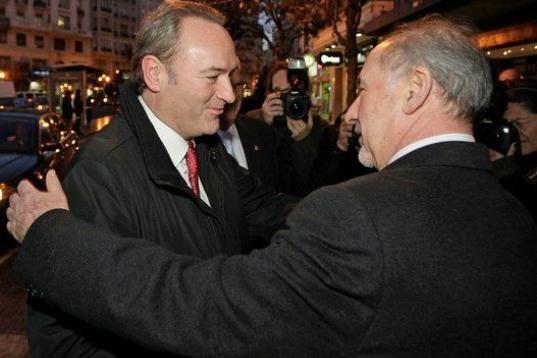 El presidente de la Generalitat valenciana, Alberto Fabra, junto a Rato en la entrega del Premio Tolerancia el 8 de febrero de 2012.