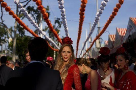 Durante semanas, las sevillanas preparan su traje para estos días. Un truco para reconocer a las de pura cepa: se colocan la flor en la parte alta de la cabeza, en ningún caso sobre la oreja. Sería un fake.