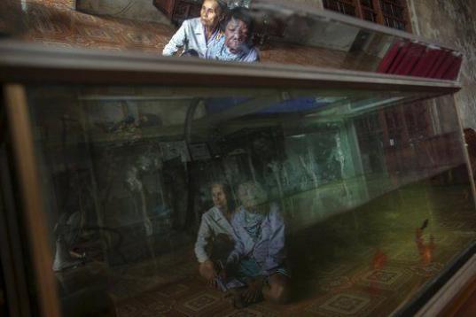 Dang Thi Quang y su hijo Nguyen Van Binh se ven reflejados en el acuario de su casa en Quang Binh. El padre de familia fue otro soldado afectado por el agente.