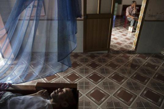 Phan Van Lam, en su hamaca, en la provincia de Quang Binh. Su padre, ex soldado, luchó en el norte. Dice que no estuvo expuesto directamente al agente naranja, pero luego vivió en zonas afectadas. El intenso daño cerebral de su hijo procede d...