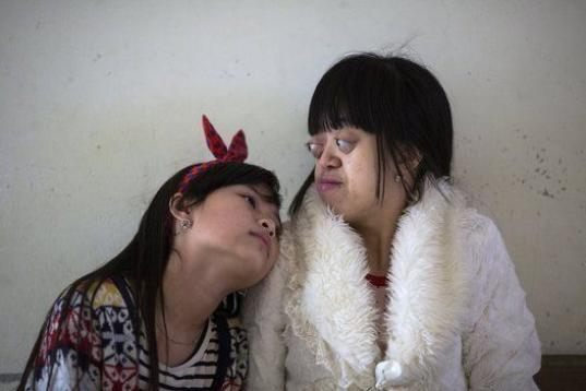 Nguyen Thi Van Long (derecha) y su mejor amiga Dinh Thi Huong, que es sorda y muda, juntas en la Friendship Village, un hospital para víctimas del agente naranja en Hanoi. Los padres de ambas eran soldado. 120 niños y 60 veteranos de guerra es...