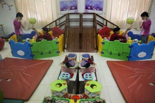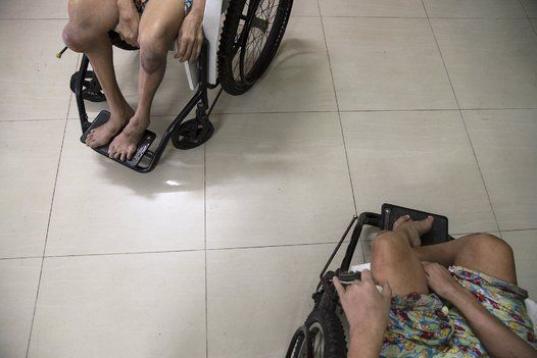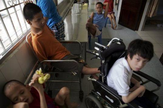 Niños discapacitados esperan para comer en el Hospital Tu Du hospital de Ho Chi Minh City.
