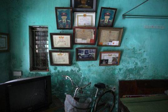 Fotos y diplomas de Doan Ngoc Uyen y Le Thi Teo, antiguos soldados, en Thai Binh. Sus hijos sufrieron, todos, problemas físicos y cerebrales.