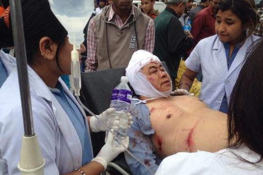 Un hombre es trasladado al Medicare Hospital de Kathmandu tras el terremoto.