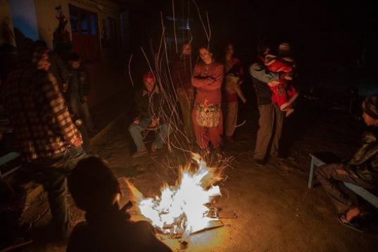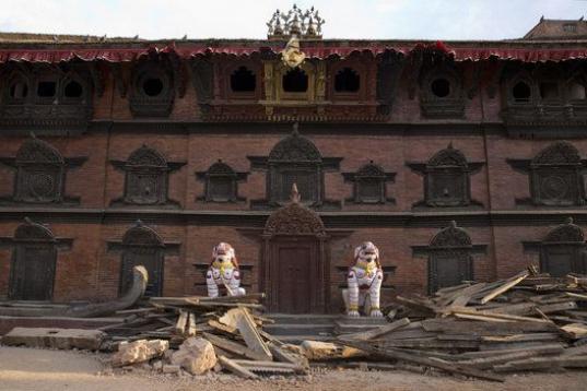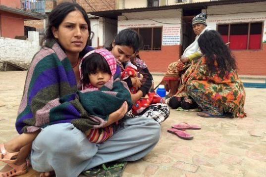 Una familia nepalí espera en las puertas de su casa, temiendo nuevas réplicas.
