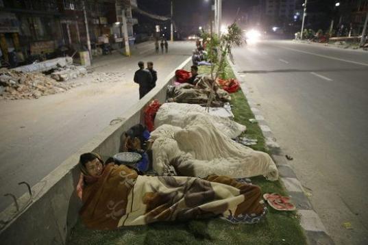 Ciudadanos de Katmandú duermen en las calles ante el miedo o la imposibilidad de estar en sus viviendas, muchas destruidas y otras, en algo riesgo de derrumbe.