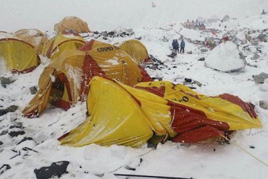 things quiet now but large areas of base camp look like after a nuclear blast. great desolation. high uncertainty among people.
