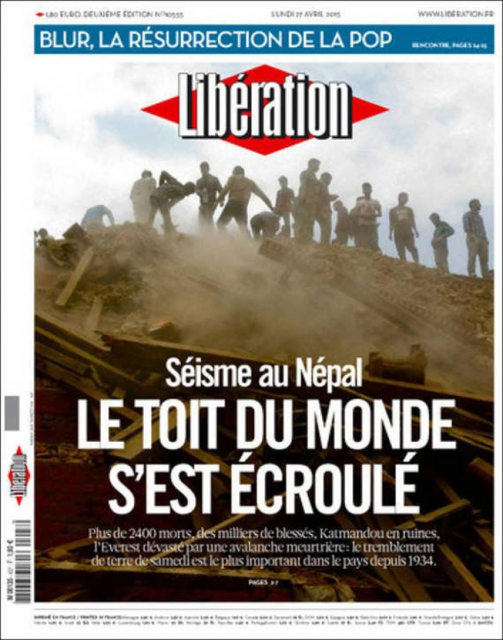 "El techo del mundo se ha hundido" es el resumen en una frase de una catástrofe que la prensa mundial ilustra esta mañana con fotos de destrucción y angustia...