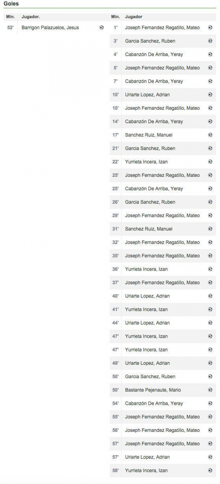 El mítico 12-1 que la selección española de fútbol le endosó a Malta en 1983 se ha quedado en una anécdota tras el partido que disputaron el sábado los equipos alevines — 11 y 12 años— del Calasanz y el Racing de Santander, correspondiente a la Liga de Cantabria.