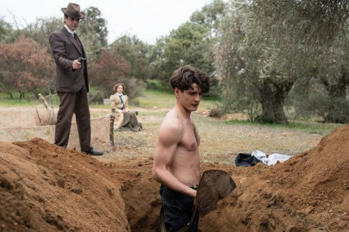 Cavar tu propia tumba da mucho calor, como pudo comprobar Julio Olmedo (interpretado por Yon González en Gran Hotel), que prefirió quitarse la camiseta para estar más cómodo.