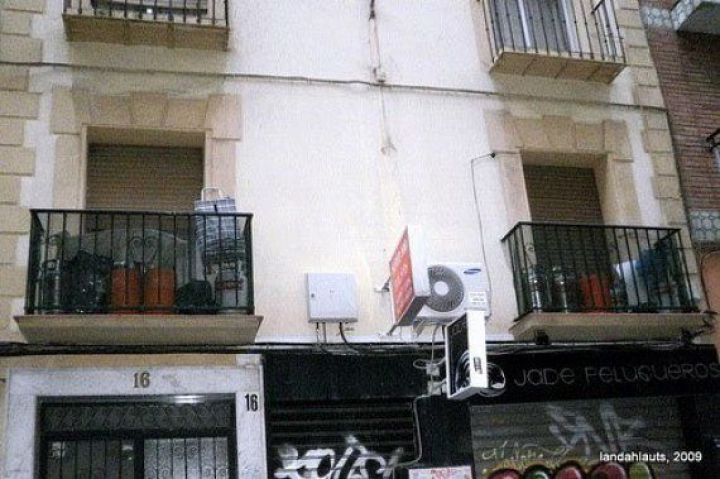 Las alternativas energéticas son las únicas que están desterrando a las bombonas de butano y su llamativo color naranja de muchos de los balcones españoles. En esta imagen del blog El Observador del Tranvía, ocupan tanto espacio que hasta el carrito de la compra, otro enemigo estético de nuestro paisaje urbano, parece estar levitando.