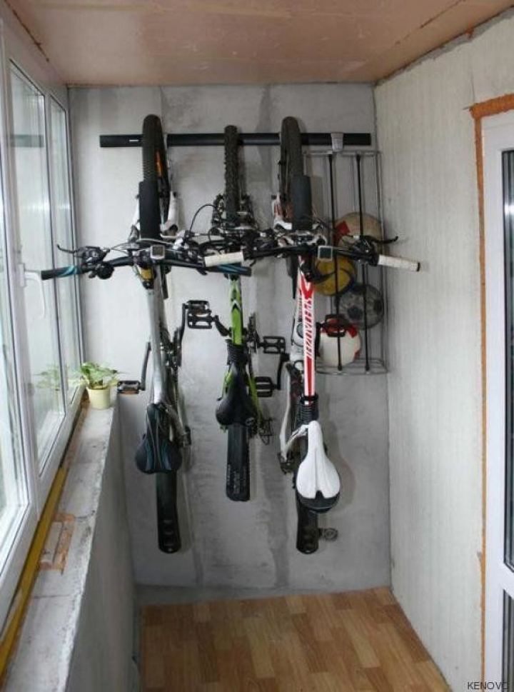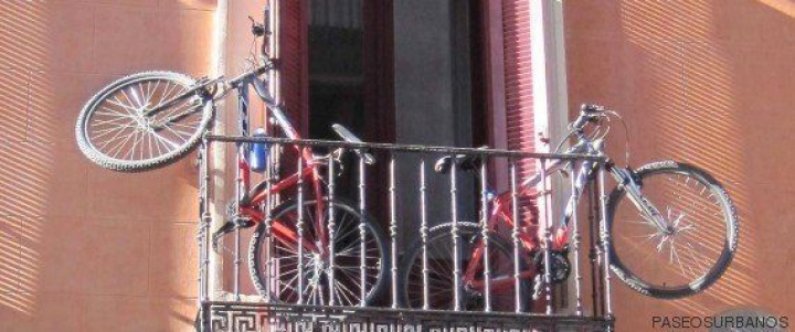 Si fijamos la vista mientras paseamos, podemos comprobar la cantidad de balcones que hay ocupados por bicicletas en vez de por personas. Aquí podemos ver un caso extremo visto en el barrio de La Latina (Madrid) por el blog Paseos Urbanos y otro de Ciudad de México registrado en Twitter. Cuando no hay otra alternativa, existen opciones para que la bicicleta no se coma todo el espacio.