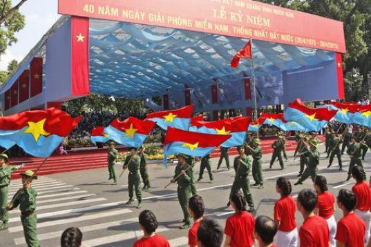 El flujo caótico cotidiano de las anchas avenidas de Ho Chi Minh, ante las que un occidental recién llegado se rinde y se plantea que está condenado a un eterno caminar alrededor de la misma manzana porque nunca podrá cruzar la corriente de motos, se ha tornado este 30 de abril en un ordenadísimo discurrir de militares y otras fuerzas del orden engalanadas. Poca broma. Celebran el cuarenta aniversario de la toma de Saigón -como se llamaba antes la principal ciudad del sur de Vietnam-, cuando el 30 de abril de 1975 el ejército del norte, comunista, ganó la guerra. El proceso de reunificación del norte y el sur se completó en 1976.